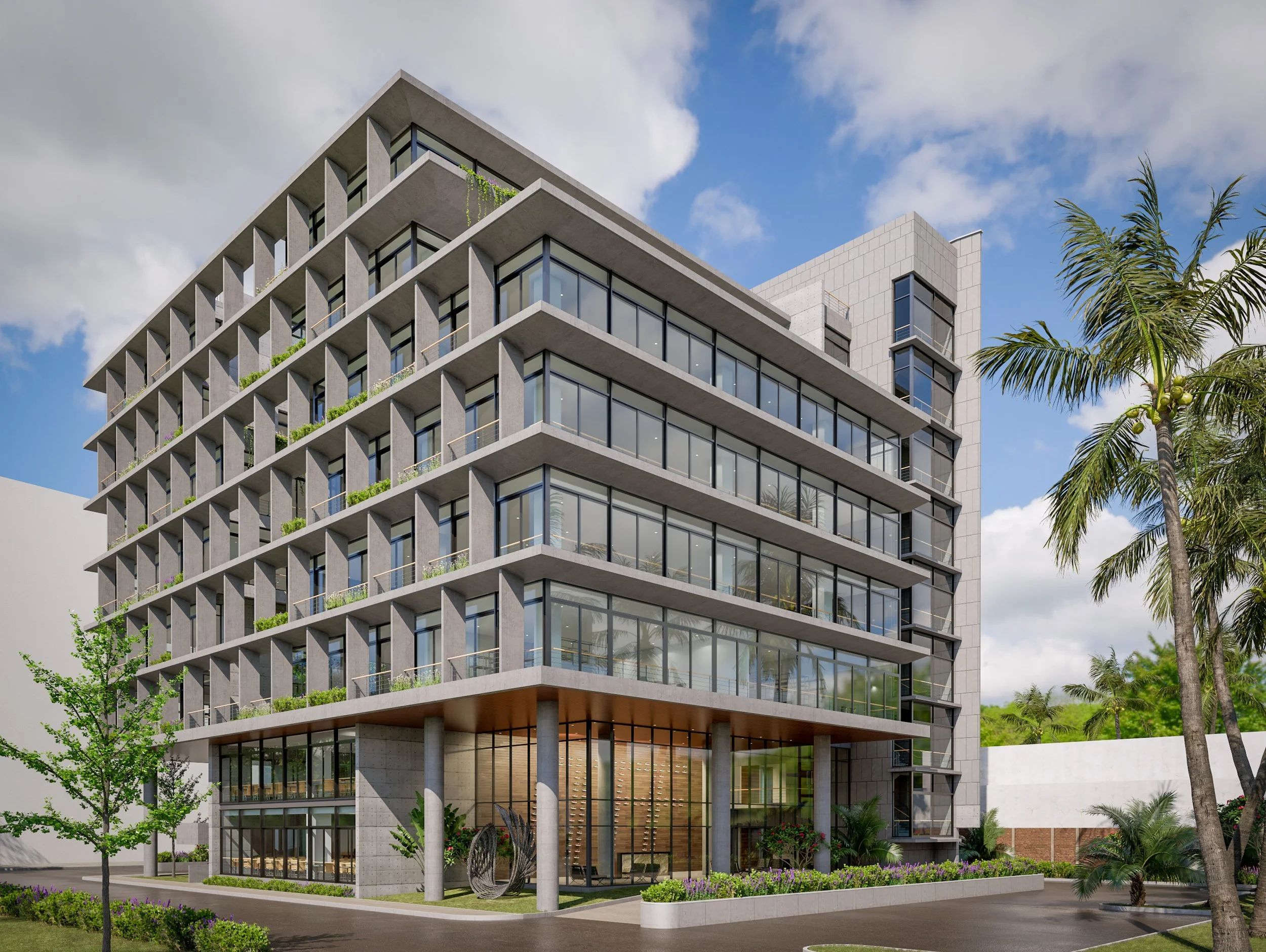 The design is an exercise in pragmatic tropical modernism. The massive structure with mixed use is vertically defined via its functions. The massive western surface is insulated with services and circulation, while the east incorporates an accessible brise-soleil peppered with gardens.