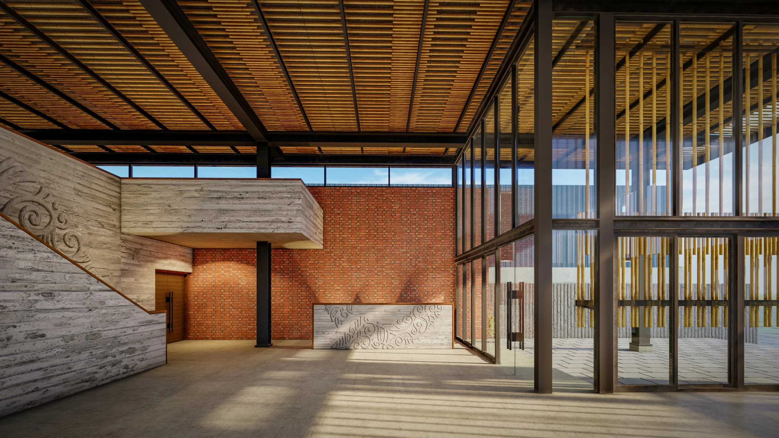 This unbuilt project was designed for a handicrafts production brand - aimed at export. The project would house both the production facility and display the products for prospective buyers. Bamboo was heavily incorporated along with decorative motifs (alpona) - as it was thematically resonant with the products on display.